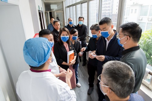 院领导班子陪同吴帅一行实地走访参观业务科室 院领导班子陪同吴帅一行参观自配制剂室 |